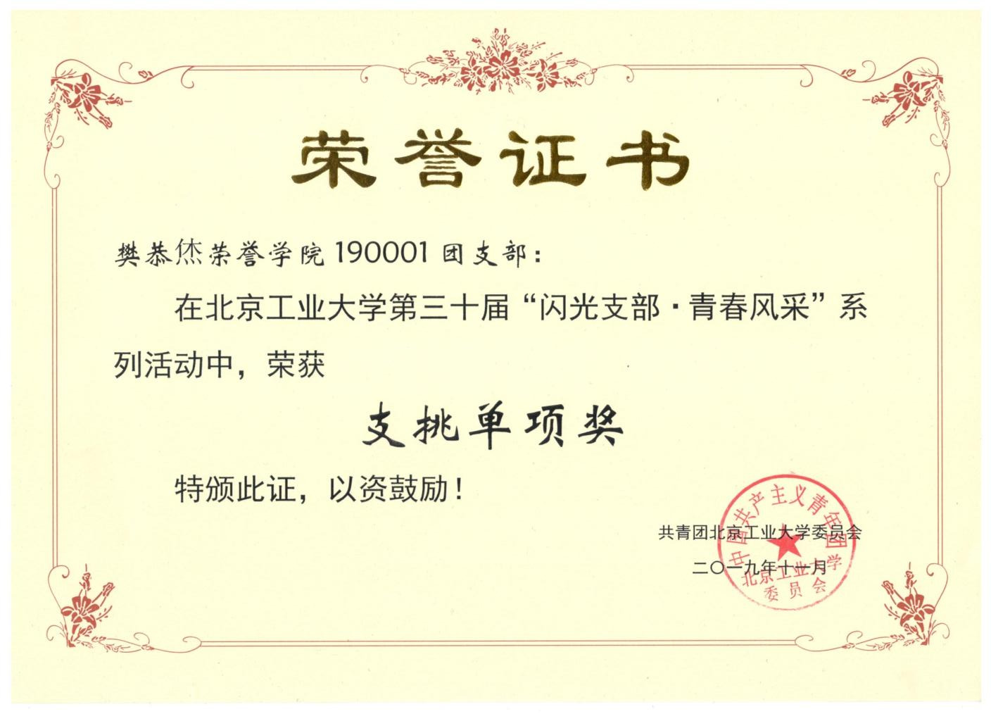 190001团支部 荣获 闪光支部 青春风采 支挑单项奖