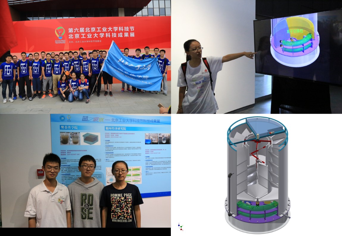 在此次参展作品中,樊恭烋学院2015级学生向大家展示了《生态敏感区桥面径流收集与处理装置》项目。该项目的设计初衷在于保护环境,尽量减少人类活动对生态敏感区的影响。该装置在混凝沉淀和离子交换的工艺基础上,进行了结构创新设计和集成,并加以自动控制,使其能够适应无人值守的工作条件和复杂多变的气候,达到高效去除桥面径流中SS、COD、重金属等污染物的目的。该装置设计放置在桥下河边的位置,可将桥两侧的集雨管直接引入装置内进行处理,处理完的水排入河中,而且设计紧凑,使用、运输方便,占地面积小,维护成本低,适合处理低浊度的桥面径流废水。如果得到应用,可以减少径流中污染物对环境的影响,除此之外,该装置还可以用于不方便使用自来水的小村庄的供水。项目负责者除了向新生们进行了实物展示,还通过视频展示了该装置的处理方式和实际的处理效果。