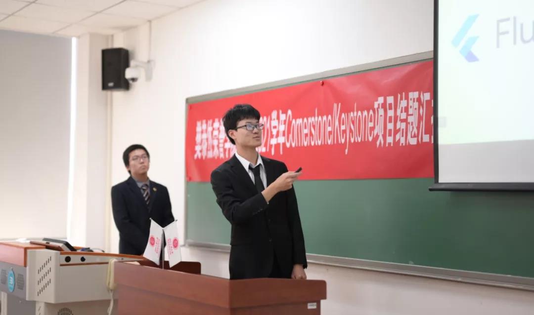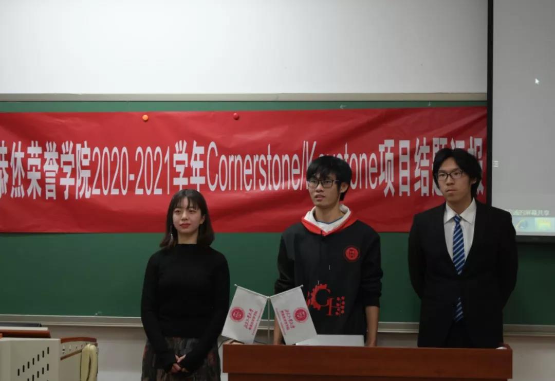 2020-2021学年Cornerstone/Keystone项目结题汇报在第四教学楼608室举行。在本次活动中,学院请到了材制学部叶红玲教授、信息学部马伟副教授、材制学部柯小行副教授、信息学部李童副教授、信息学部朱晓庆老师、信息学部郑榜贵老师、信息学部王泽老师、材制学部王心心老师 共8位来自多个学部的导师出席并担任评委进行评分。由于疫情原因,现场只有汇报人,评委导师和志愿者参与,全体2021级同学通过线上观摩了此次答辩。其中主持人由2021级张佩敏,徐梦菲,柳雨萌,齐骥四位同学担任。