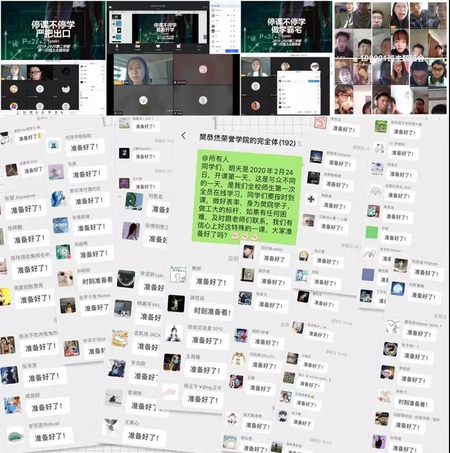 为了帮助同学们做好网课学习的准备工作,学院根据课程要求和教学计划,协助授课教师督促同学们积极测试多种在线教学平台,建立课程微信群,了解教学网站及实时会议软件高峰工作状态,并建立多个教学应急方案。同时,学院召开主题班会,要求同学们积极调整作息,在居家做好自我防护的同时以100%的精神参加特殊时期“与众不同”的云课堂教学,同学们也积极反馈已准备好了!