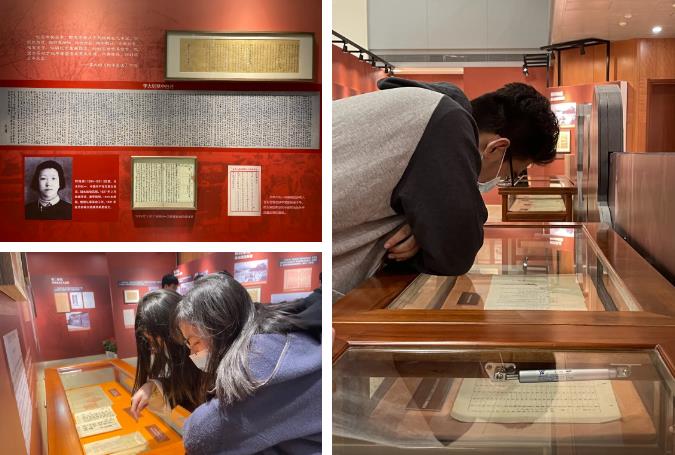 同学们首先参观的是《播火——李大钊革命活动档案史料展》,李大钊同志是中国共产主义运动的先驱,伟大的马克思主义者,杰出的无产阶级革命家,中国共产党的主要创始人之一。档案馆中陈列了李大钊的生平与部分当时的档案。在当时本可以偏安一隅的李大钊先生并没有选择安逸的生活,而是殚精竭虑,将自己的身心投入共产主义事业中。同学们阅读了档案馆中李大钊先生所写的《狱中自述》,深刻的感受到了他在危难降临之时的担当精神,心中无尽的感动与钦佩。追寻李大钊先生的革命足迹,同学们回顾着中国共产党的革命先辈们们坚韧而光辉的品格。