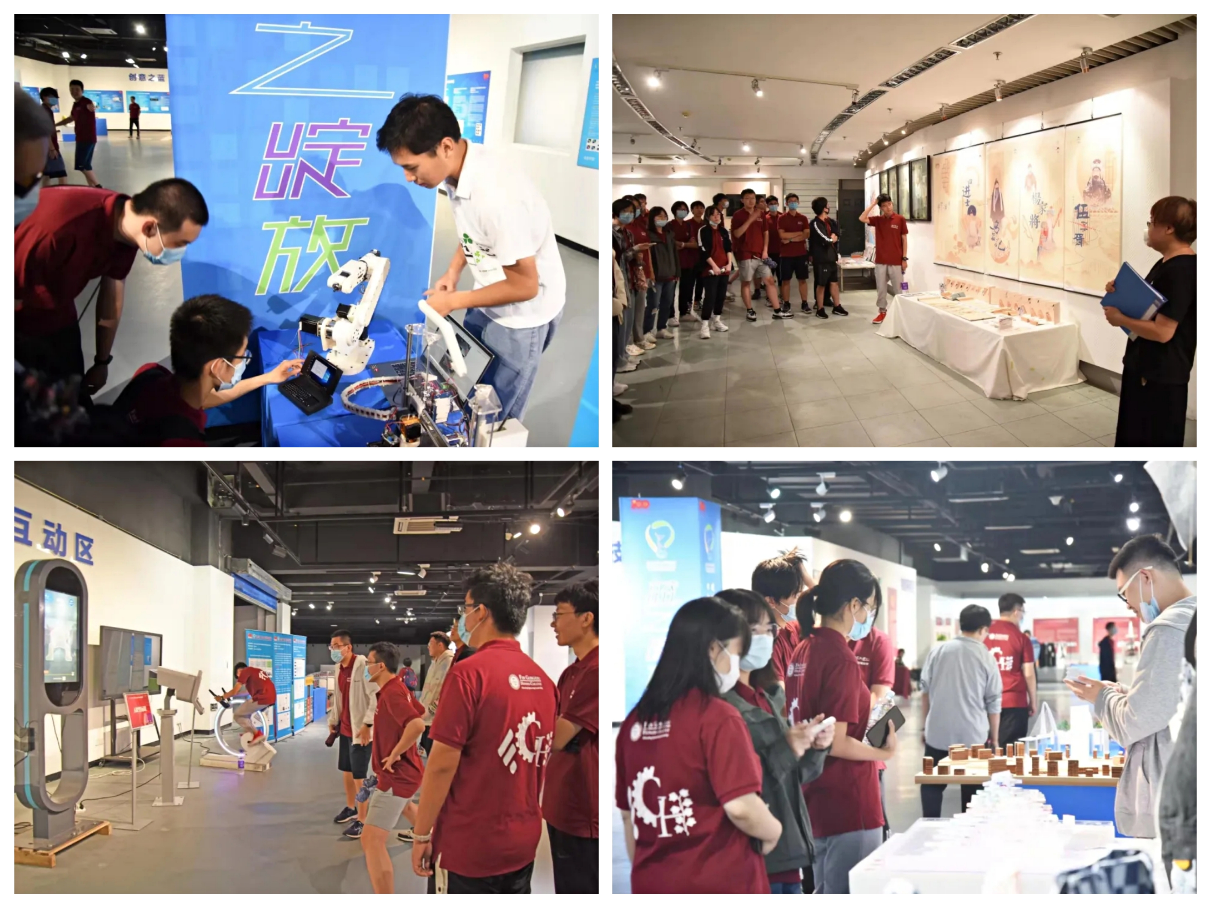第一站同学们来到了科技成果展,全方位、多层次,宽领域的展览让人耳目一新、眼前一亮。这些展品给大家最大的感受是:贴近生活、创新生动,其中不乏优秀的结合时代旋律的科技作品。建党百年之际,由北工大团队研发,专为“红船”而制的模型船 “征程号”,以表对中国共产党的敬仰;2022年北京冬奥万众瞩目之时,展览了同学们搭建的基于灯库扩展包的冬奥国家速滑馆的亚克力模型,提示即将迎来与国际近距离接轨的契机;国家防疫期间,也有同学设计了“战役”桌游,将疫情期间社会资源分配、职业分工作为游戏内容,使用户体验疫情中的起起落落和工作人员的不易。