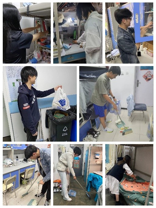 ③ 扫一屋更要扫天下,全体同学整理内务,断舍离提升生活质量。