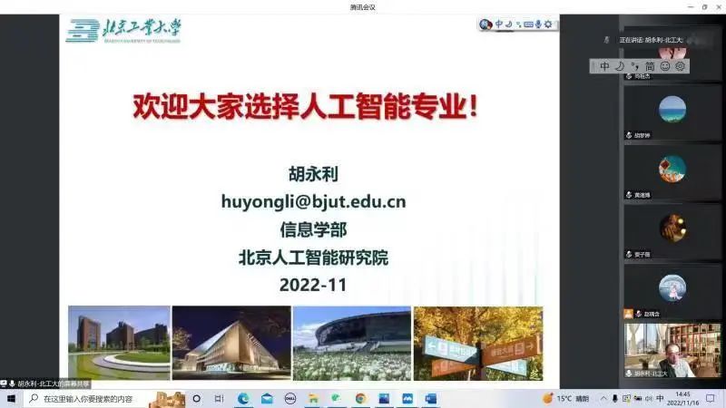 信息学部人工智能与自动化学院胡永利教授为同学们带来了人工智能相关方向的介绍。胡教授首先详细地介绍了人工智能的发展历史及其对当今社会发展的重要作用,阐明了人工智能专业不但拥有宽广的就业前景,而且能成为同学们实现个人价值的舞台。接着又介绍了AI人才的培养目标,展示了AI技术未来在各行各业中的应用。胡教授表示,我们要培养具有优秀专业能力与道德品质的AI人才,人工智能一定能带领同学们走向更加光明的未来。