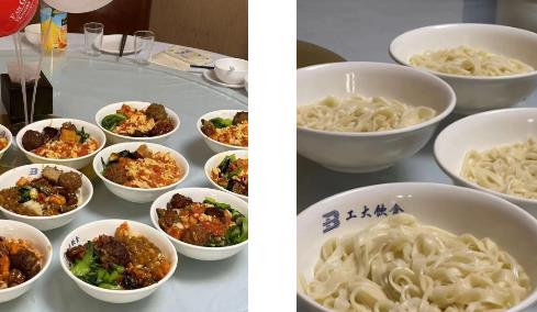 学子们围在案板旁,从揉面、擀面到切面,面杖横飞、手起刀落,每个人都参与了长寿面的制作,既体会了下厨的艰辛,又品尝到了“自己动手、丰衣足食”的甜蜜,可谓是一次颇具深意的生日会。在我国古代,脸即面,“脸长即面长”,故人们常常借用长长的面条来祝福长寿;而此刻,同学们碗中亲自制作的面条却如同青春的星线,连接着过去的思忆与前路的明星;只见岁月沉香与未来憧憬一同沁润进亲手制作的面条中,随面汤的水汽慢慢氤氲开来,深吸一口、细细咀嚼,味道一如少年时。