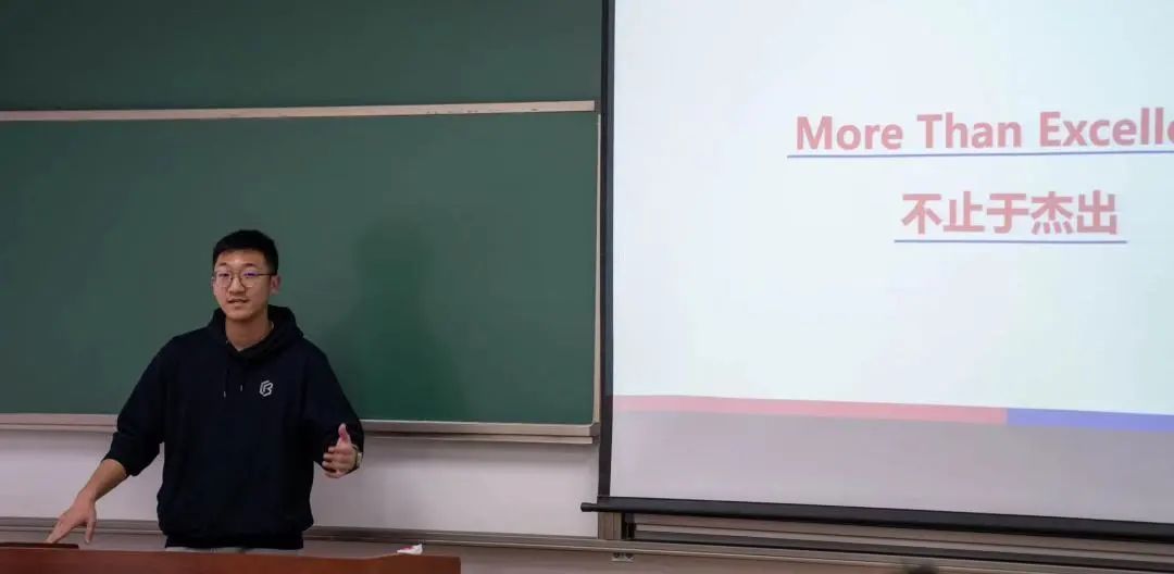 精神“学而不霸”和“不至于卓越”和学干工作意义并用他在学生会期间组织的一些活动的成果进行说明。韩柳彤学长讲述了他通过组织一些有意思的活动去让同学的生活更多彩,同时提升学院的凝聚力。
