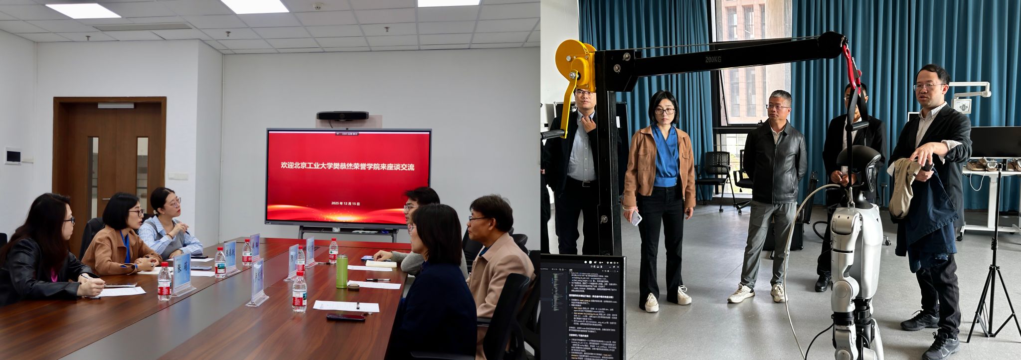 2025年12月16日,学院一行在华南理工大学未来技术学院副院长舒琳教授的带领下,参观了智能交互实验室、大数据综合实训室等学科创新平台,并了解该院在数字健康与低碳能源方向的拔尖人才培养成果。通过与企业共建“双导师制”,该院实现了课程内容与产业需求的精准对接。座谈会上,双方围绕“课程考核改革”、“校企协同育人”等议题展开深入讨论,为学院优化评价体系、强化实践环节提供了新思路。