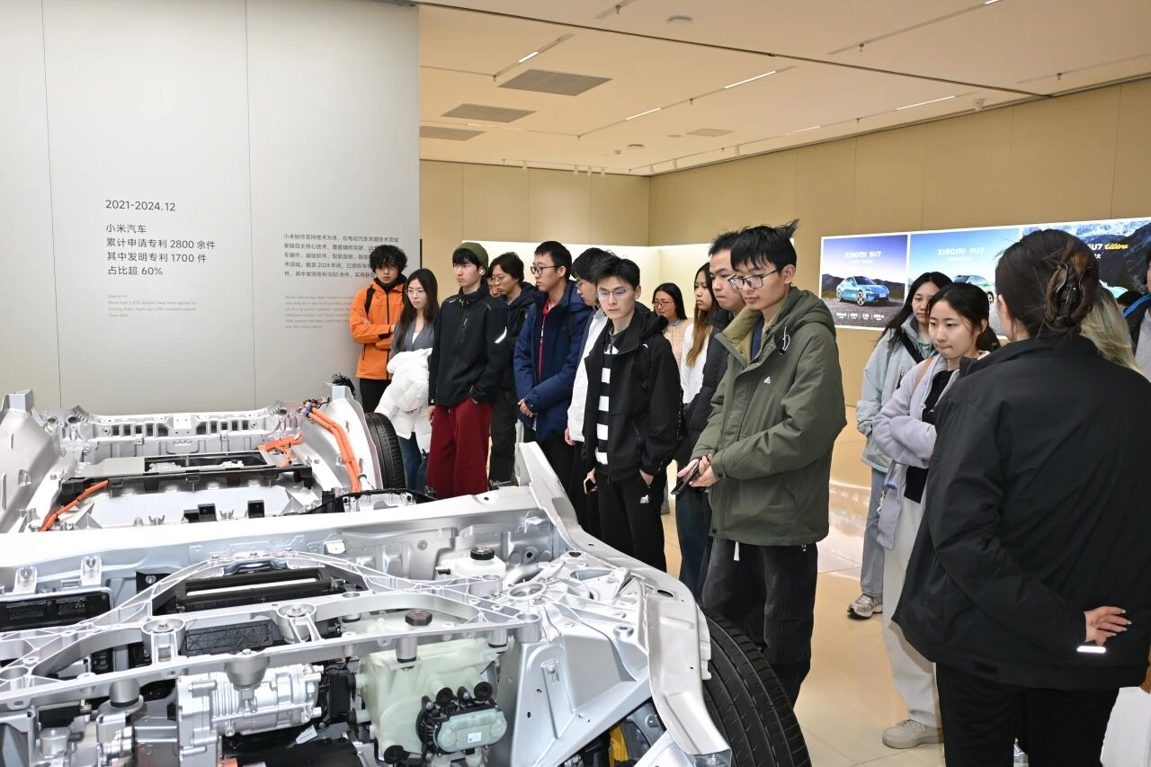 同学们还饶有兴致地打开了前备箱,讨论着这额外储物空间背后的集成化设计巧思。从硬核技术到产品落地,大家对小米汽车的研发理念有了更完整的认知。