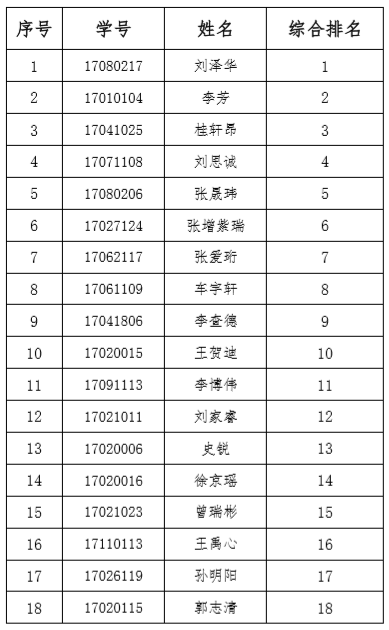推荐2021年优秀本科毕业生免试攻读研究生工作安排》,对申请推荐免试攻读研究生的成绩基本情况和加分材料进行了评审,最终形成了学院推免综合排名,确定了2021年本科生推免名单为以下18名同学,现公示如下: