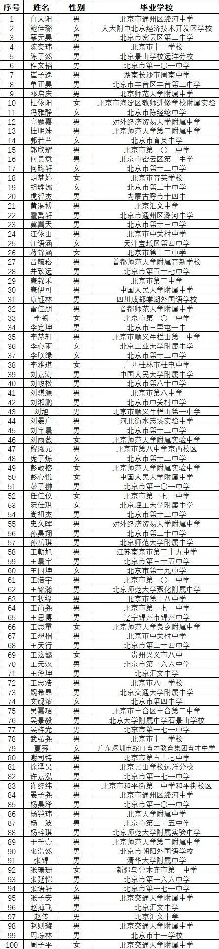 新生选拔入选复试学生名单