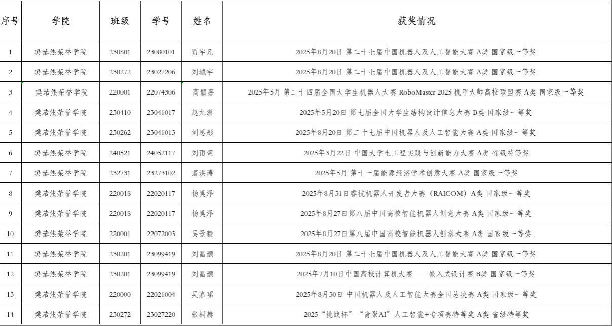 樊恭烋科技竞赛奖(院级) 14人/次